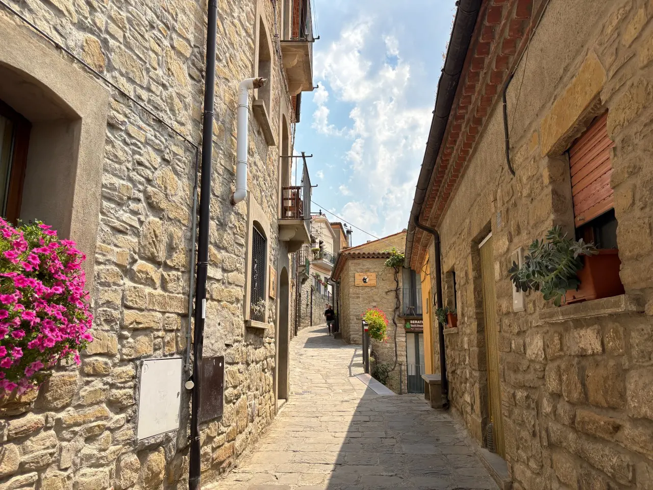 石畳の狭い路地が入り組む村の中にはバールやレストラン、ピザ屋さんなどがあり、地元料理を楽しむことができます。