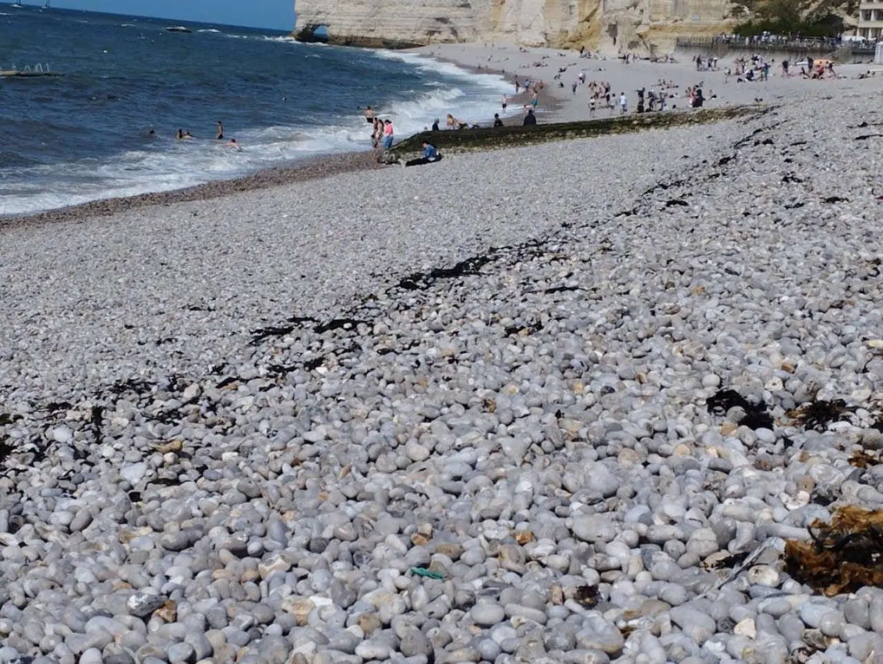 岸壁上では石の滑落の加速化や慣れない観光客の事故、中心部での大渋滞、無料のお土産として1日30㎏消えるとも推定されるガレ(ノルマンディーの海岸を覆う特徴的な丸石)・・・。