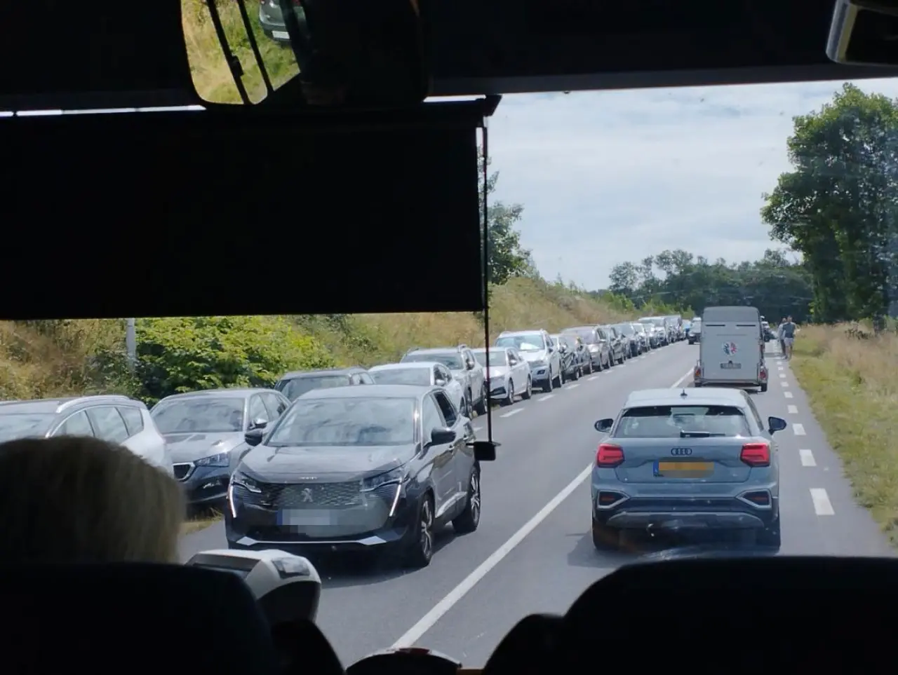 こうしてわずか4km²の面積と、それに見合った程度の道幅しかないエトルタ村に年間150万人、1日4000人余の観光客がマイカー等で押し寄せるとなれば、村に起きる困難は想像に難くありません。