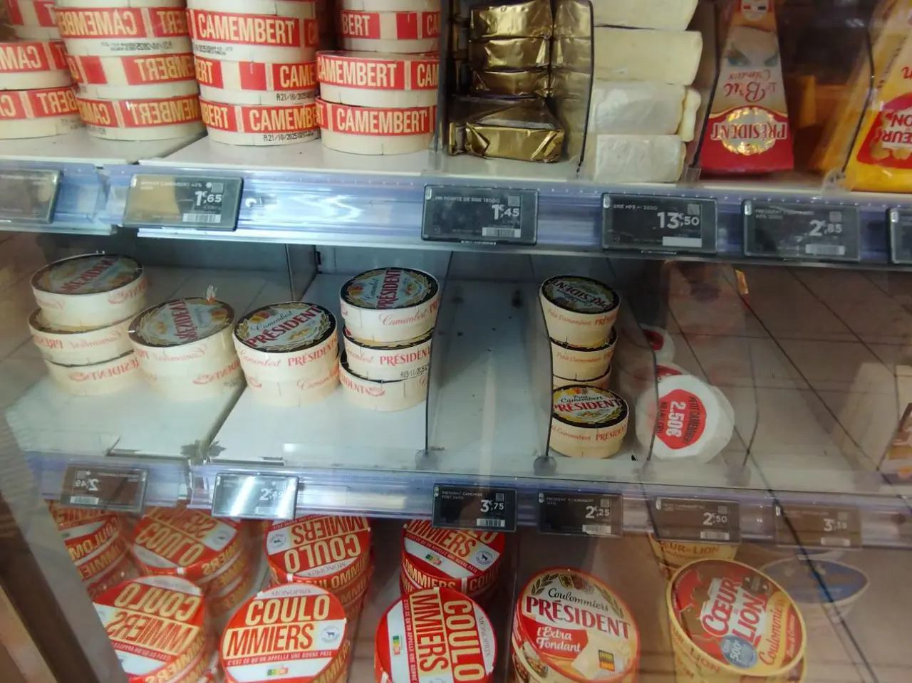 後者の売り場ではスーパーの自社ブランドからプレジダン(Président)、クール・ド・リオン(Cœur de Lion) のような大手のもの、さらに地元のチーズ会社の製品とチョイスが大変豊富。