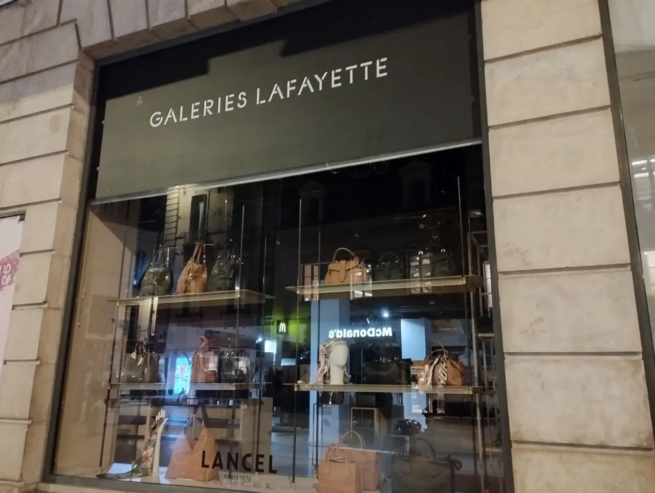 地方店舗の1つ、 ディジョン市のギャルリ・ラファイエットでは2025年11月6日、長年建物の上から垂れ下がっていた鮮やかな赤い生地の「Galeries Lafayette」の垂れ幕が消え、十字路に面した入り口上にある、シーズンごとに華やかなデザインを変えていた巨大な四角い広告看板は骨組みだけの寂しい姿に。