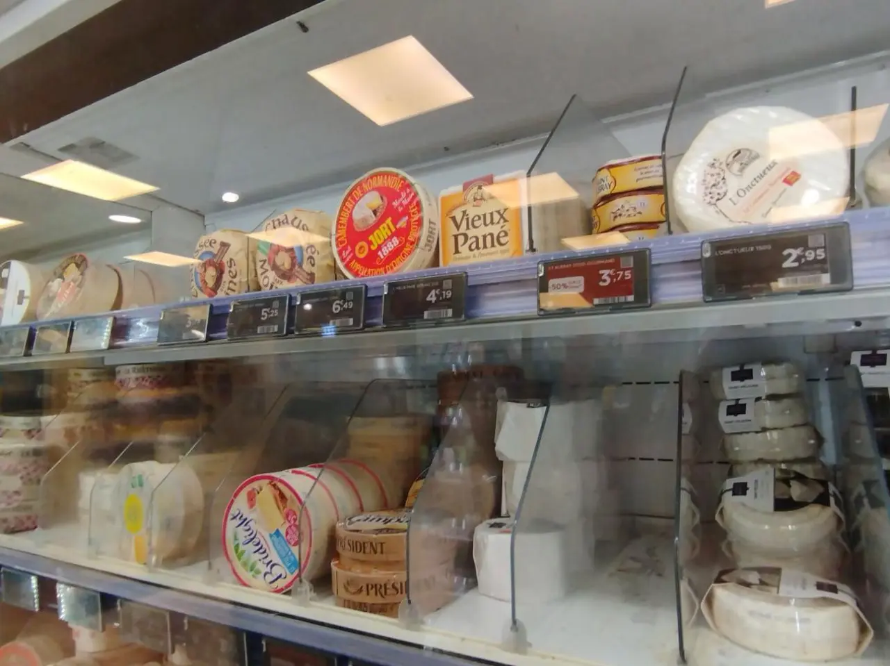 農業国フランス国内の大きめのスーパーでは、チーズ売り場がよく2箇所にあります。